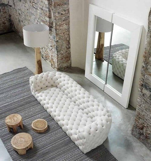 Cuando un mueble se pone de moda, se acaba instaurando casi como una obligación, y a veces no termina de casar… No obstante, posibilidades para poner un sofá chester, sea en una casa o en un local público, hay muchas. Lo más natural es que sea una referencia vintage dentro de una decoración de este estilo, incluso con el cuero envejecido. No lo recomendamos especialmente para un proyecto de aires nórdicos muy purista, aunque el que nosotros tenemos en cartera, de blanco luminoso, sí podría encajar.